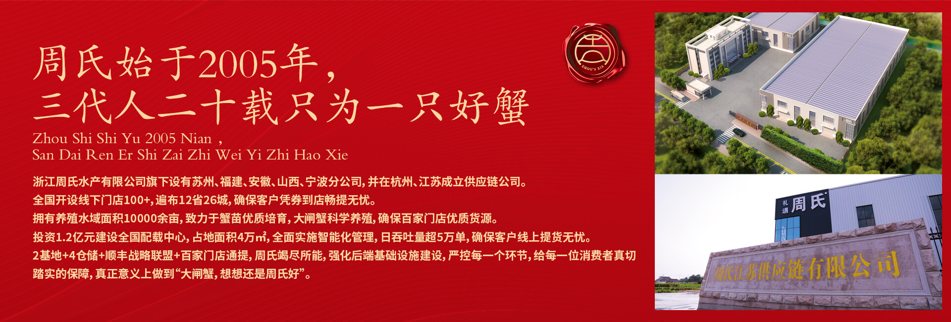 周氏水產精品大閘蟹,14年匠心沉淀,全國87家直營門店,100只大閘蟹只精選最優50只。不虛標規格,不玩???